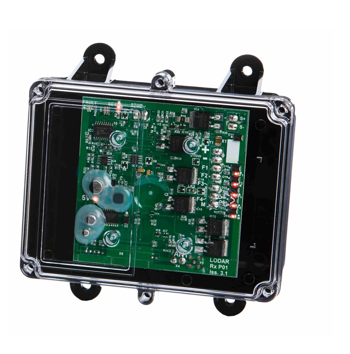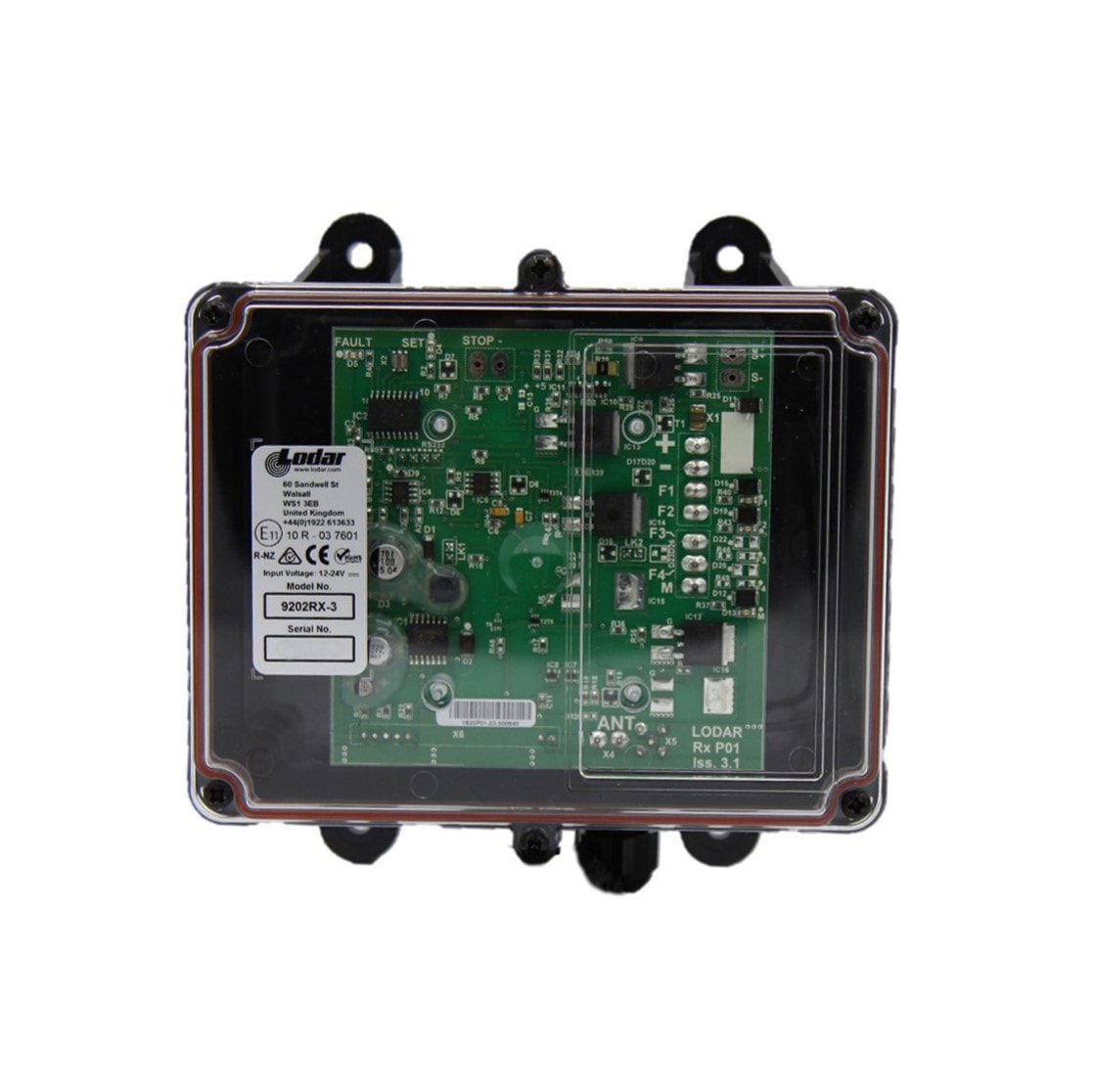 Dieser vielseitige Empfänger eignet sich optimal für den industriellen Einsatz an allen denkbaren Anwendungen zur Ansteuerung von ON/OFF-Befehlen – wie z. B. der Bedienung der Funktionen von Abschleppfahrzeugen, Maschinenbeschickung (Freigabe vom Stapler aus, nach Befüllung), Pumpensteuerungen, Boote (Winschen, Bugstrahlruder etc.), Silos, Industrietorsteuerungen etc.