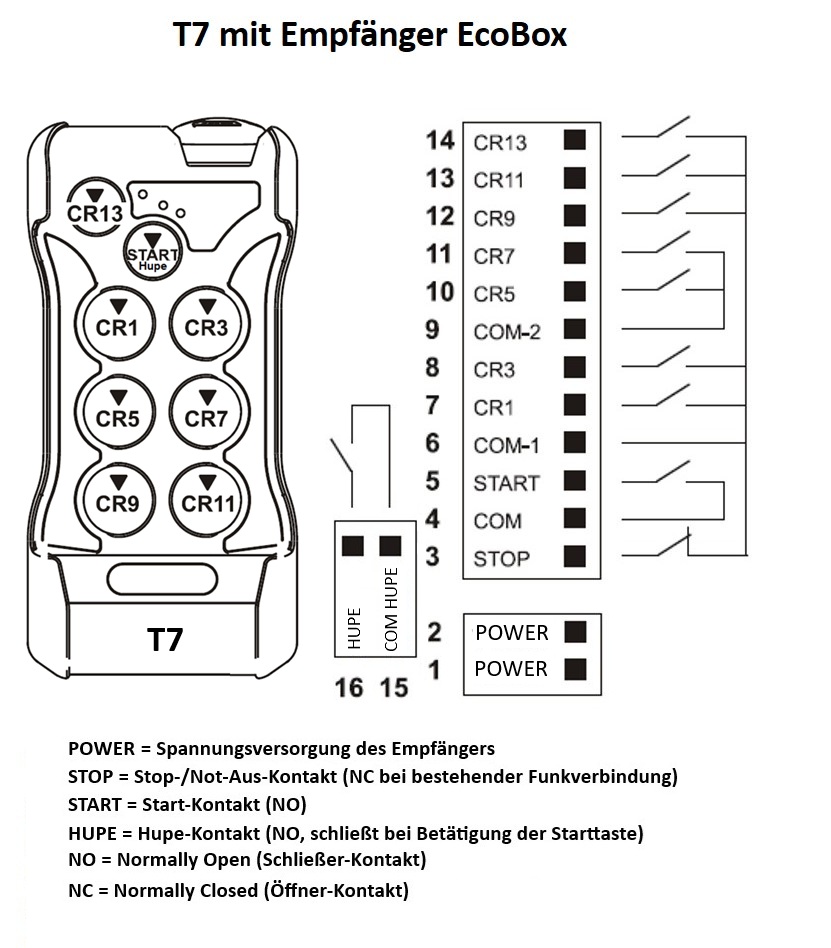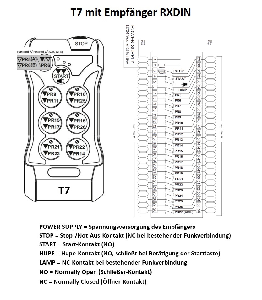 | Modelle | 2 Tasten + AUX + Start + Not-Aus-Taster (T3) 4 Tasten + AUX + Start + Not-Aus-Taster (T5) 6 Tasten + AUX + Start + Not-Aus-Taster (T7) |