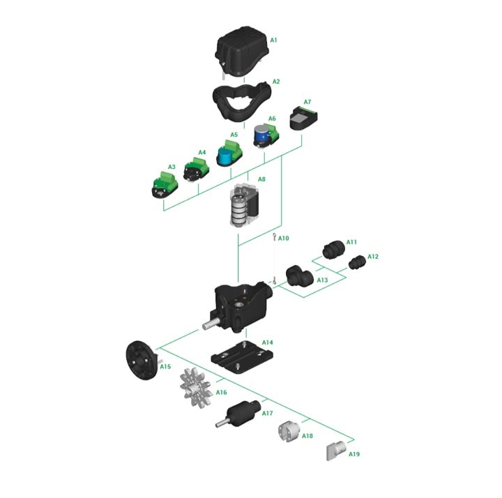 | Optionen | Sprungschalter 1NO+1NC Wechsler oder Schleichschalter 1NC Nockengruppen mit bis zu 5 Schaltern und Potentiometern oder Encodern Kabelverschraubungen oder dedizierte Verbinder Verfügbar mit Kondenswasserschutzstopfen Verfügbar mit Flanschen, Ritzeln und Kupplung Platten mit Universaladaptern zum Ersetzen vorhandener Systeme |
