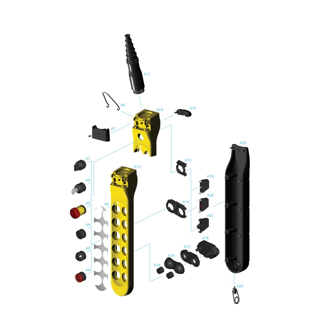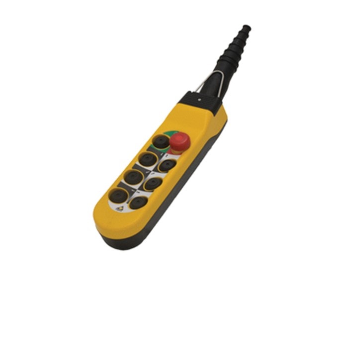 Dieser hochwertige und robuste Hängetaster kann mit bis zu 13 Drucktasten bzw. Schaltern ausgestattet werden und eignet sich hervorragend für den industriellen Einsatz. Durch seine ergonomische Form und seine praktische Größe ist er besonders handlich und leicht zu bedienen. Die Tasten lassen sich aufgrund ihrer Größe auch komfortabel mit Arbeitshandschuhen bedienen. Alpha hat die Schutzklasse IP 65 und ist dadurch optimal vor Staub und Wasser geschützt.