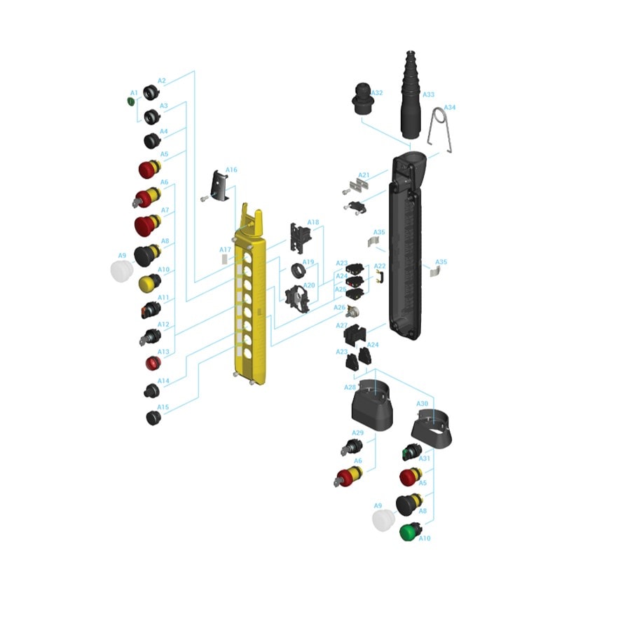 – Verfügbar mit einem speziellen Schutz für die am Boden des Hängetasters montierten Schalter/Taster