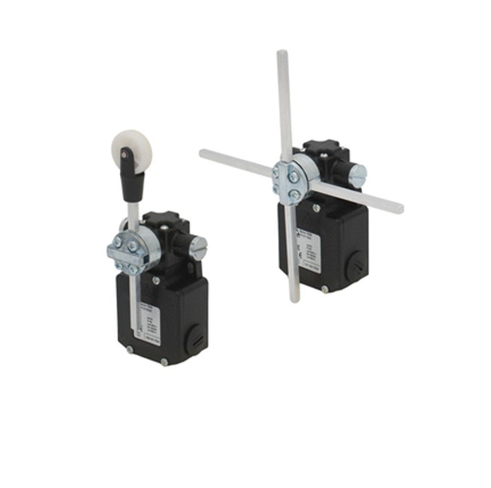 Dieser Positionsschalter hat Kreuzstangen, die 3 oder 4 feste Stellungen einnehmen können oder T-Stangen mit 3 festen Stellungen von 90°. Er ist für die Steuerung der Bewegung von Brückenkranen, Hebezeugen und Industriemaschinen geeignet. Dabei sind die Schaltköpfe mit unterschiedlichen Stangentypen und Bewegungen für Spezialapplikationen geeignet. Das Gehäuse und der Schaltkopf bestehen aus thermoplastischem Material, sodass die Komponenten witterungsbeständig sind. Die Schutzklasse mit der Kabelklemme M20 liegt bei IP 65, sodass dieser Positionsschalter optimal vor Staub und Wasser geschützt ist. Darüber hinaus kann er auch bei extremen Temperaturen eingesetzt werden.